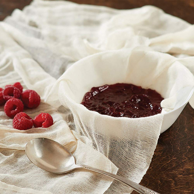 細かいメッシュ生地でチーズクロスと呼ばれるだけに、ソフトチーズ作りに使われて、洗って何度も使うことができる、昔からある道具の1つです。