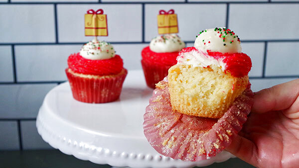 付属のピックをさせば、ほらっ、簡単にクリスマスモードのカップケーキの出来上がり♪
