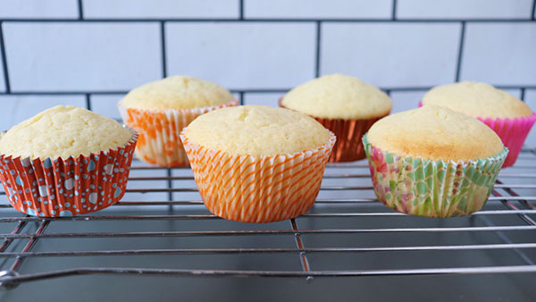 生地を入れ終えたら、マフィンパンを机に軽くトントンとやって、生地の空気を少し抜いてから焼けばOK!