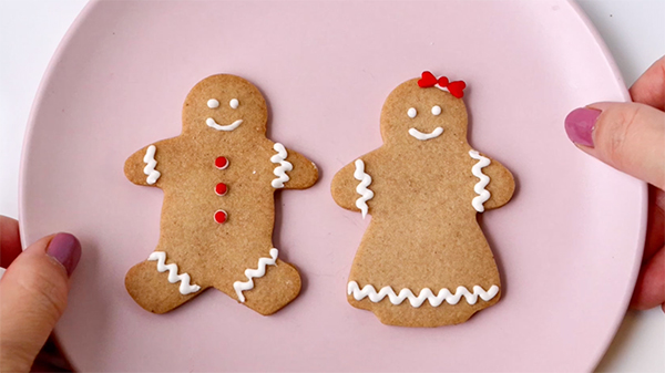 スプリンクルを使って、ジンジャーマンのアイシングクッキー