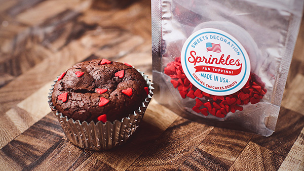 米国製スプリンクルのレッドハート❤︎は発色が良く、チョコ色との相性がいいし...