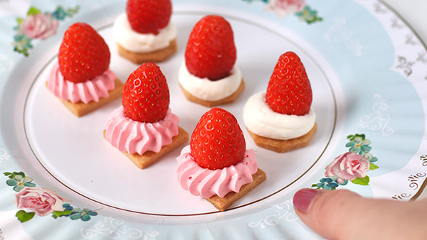 四角いクッキーって角があって持ちやすいんですねッ!!! (今回はクリームに粘度があって、苺を持ち上げるとくっついてきましたが...苦笑)