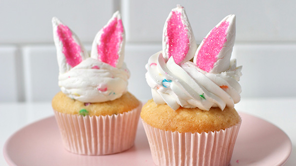 実験当日、クリームのことしか考えてなくって特別なアイデアがすぐ浮かばず... 食材の中からマシュマロをみつけ、サンディングシュガーでウサ耳に🐰(←春だし簡単だし🌸)