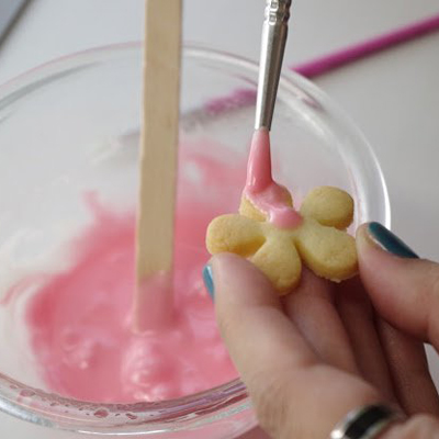 でしたら。アイシングシュガーにカラーを少しだけ加えて、春らしいパステルカラーのクッキーを作るなら、筆で塗るだけでも可愛くし上がります。