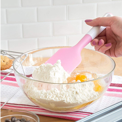 このピンクのゴムヘラ(https://www.nut2deco.com/product/8154)は、他のヘラとちょっと違って、全体的に芯がしっかりめ(=固め)なので、力仕事ときに向いてて、すり混ぜ作業に使いやすかったの。