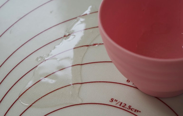 溶かしたイソマルトボールをシリコンマットに適当にバッとのばして...