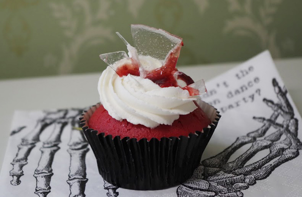 割れたフチに、イチゴジャムを塗って血のような雰囲気を出して...