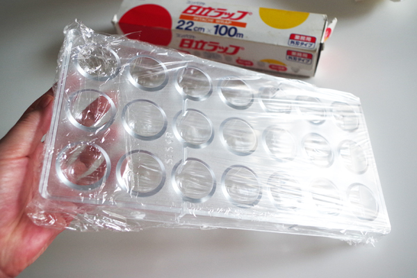 懸命にキュッキュと磨いたチョコレート型。これをそのままにしておくと、また空気中の汚れがつくので、お掃除終了後はラップで包んでおくと安心です!