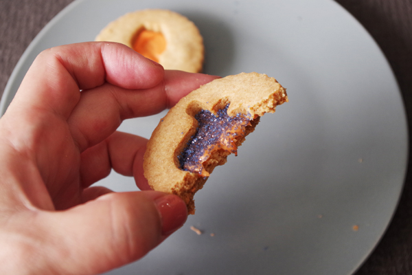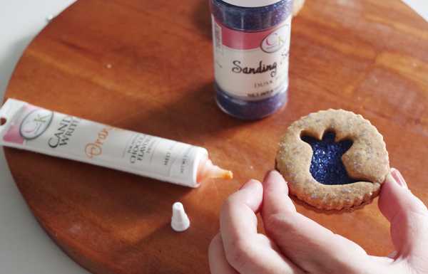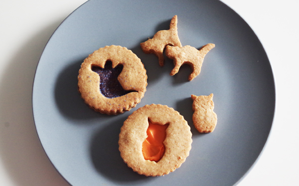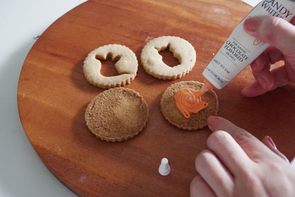 キャンディライターを挟んだ、全粒粉チョコクッキー(ハロウィンの穴バージョン)