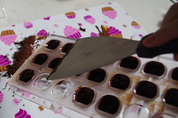 美しいチョコレートを作るには、最後の蓋をする作業をイッパツで決めたいんで(何度も触ると変な筋が残っちゃうのよぉ)、ちょうど良い幅=1回できめられるこのスクレーパーはおススメだと思いました!