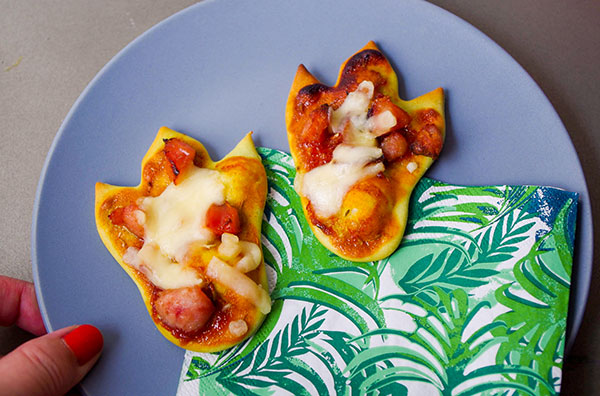 恐竜の足のクッキー型で、型抜きピザを作ってみました。コツは...
