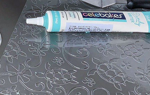 テクスチャーマットで、ウミガメの模様チョコを作ってみました
