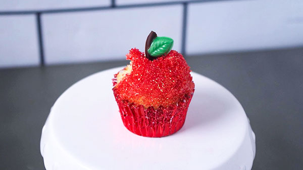 レギュラーサイズのカップケーキを林檎化するには、愛用の 3Dの林檎チョコレート型にある「葉っぱ」が使えて、迷いなくスルッと簡単に完成したのですが...