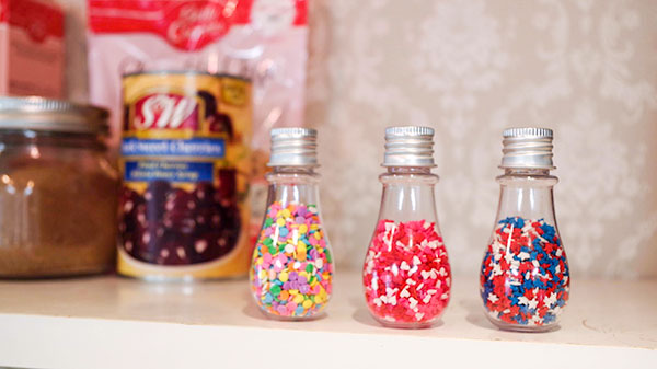 オリジナルブレンドしたスプリンクルは、こんな風に小さなボトル(https://www.nut2deco.com/product/9634)に入れて飾っておくのも可愛いです❤︎