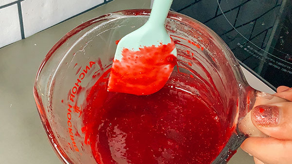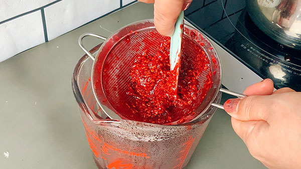 ラズベリーは種が口に残るし、細い口金に粒が詰まってもいけなので、ストレーナーで濾して...
