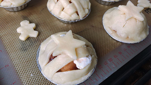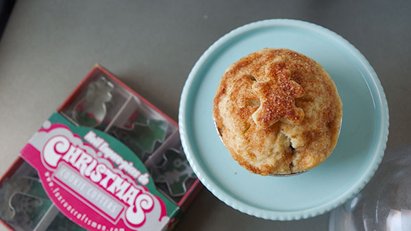ジンジャーマンにシュガーをかけすぎて写真がイマイチだけど... いつものアップルパイが簡単にシーズン化できて、このクリスマス・ミニクッキー型は本当に便利だと思う!