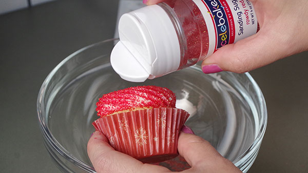 お好きな色のサンディングシュガーを全体的にふりかけます。