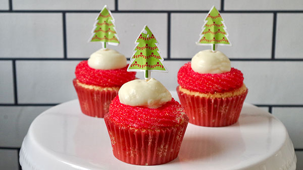 付属のピックをさせば、ほらっ、簡単にクリスマスモードのカップケーキの出来上がり♪