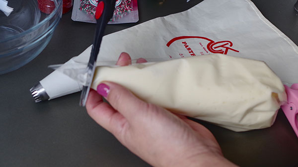 口金は大きめな絞り袋にセットして、クリームは別に使い捨て絞り袋へ入れると、途中で口金を変更できて便利です。