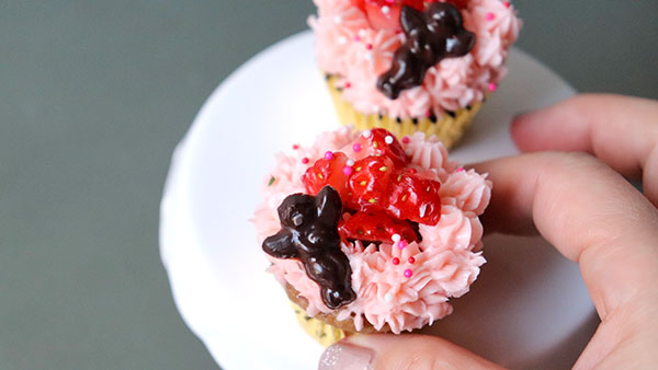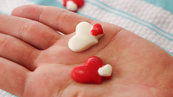 今週末はバレンタインです。いつものデザートも、ちっちゃなパーツをちょこんと乗せるだけでバレンタイン気分が高まります。