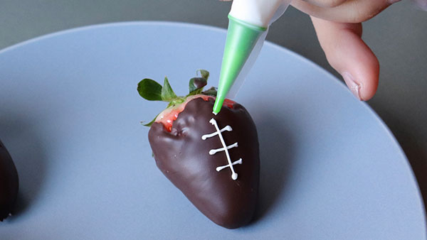 苺にバレンタインのデコレーションをしてドーンと乗せるはずが、ちょうどスーパーボウルの情報を耳にして、衝動的にこんなことをしてしまい...
