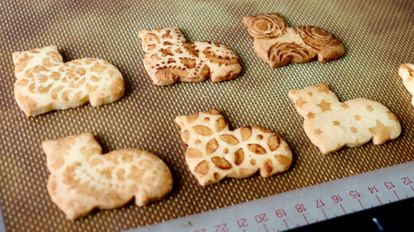 猫のクッキーは色付き生地を組み合わせたこの「三毛猫クッキー」をよく見かけますが...