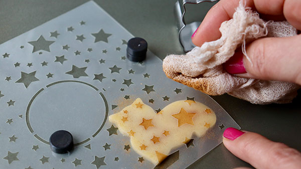 もし。ステンシルが動いてやりづらい、という方にはマグネットをオーブンの天板の裏側にくっつけてステンシルすると良いかもしれません。