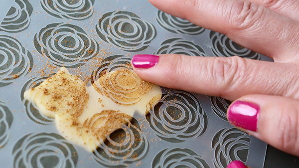 粒子が粗いのでローズのステンシルにひとつまみ置き、手でのばしちゃいました...