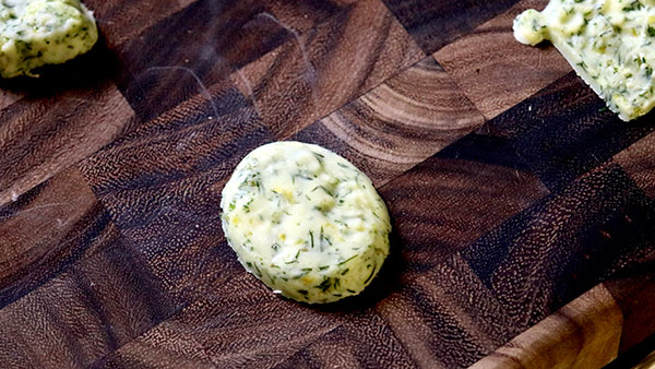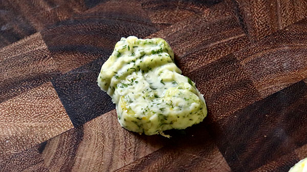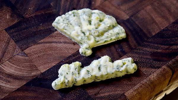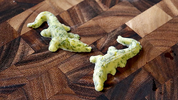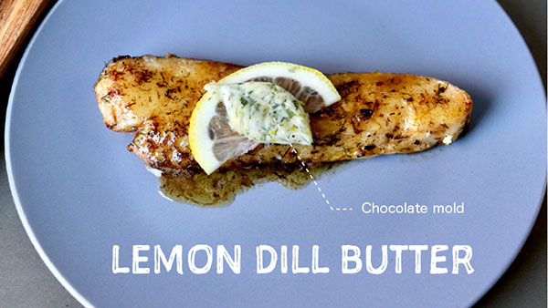 ディルとレモンの皮を混ぜたフレーバーバターがあるので、チョコ型でぬいて添えることにしました。←甘いのだけだと飽きちゃうかなぁ?と思って。