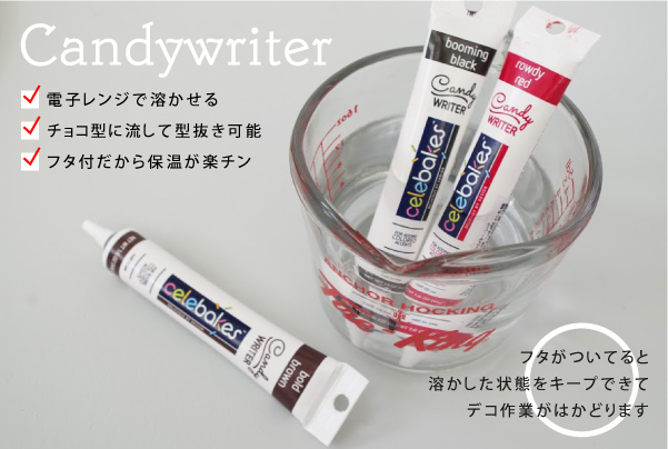 オーブンを使うのがかったるい暑い日に、ぜひキャンディライター&チョコ型を試していただければ、溶かして固めるまでのスムーズで使い心地の良さ、プラスチック製のチョコ型への不安が払拭いただけると信じています。