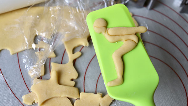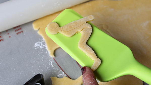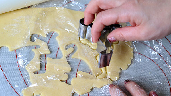 こうすると、クッキー型の細部に生地が入り込まなくなるよ。