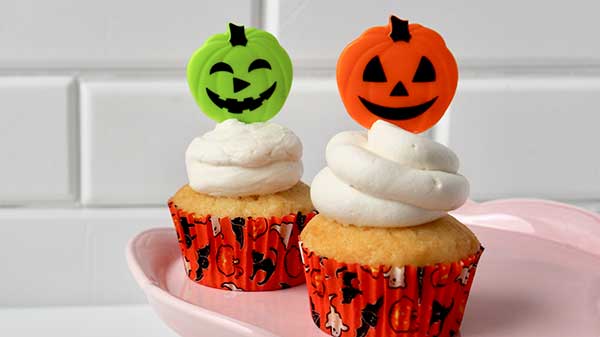 先日試し焼きしたハロウィンのベーキングカップ、これはレギュラーサイズなんですが挿してみると...