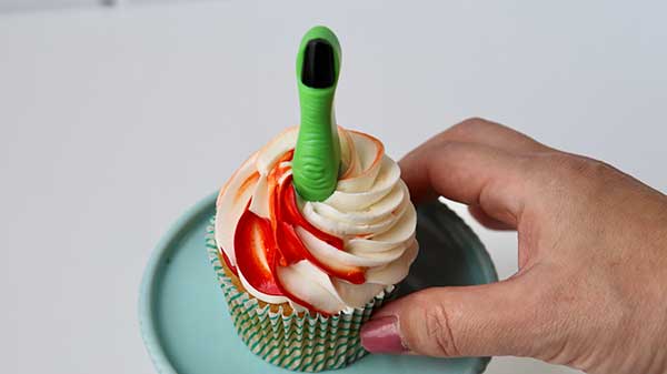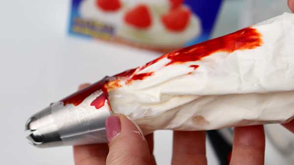 血のように見えるのは、オレンジのジェルカラーを絞り袋に塗って、クリームを絞ったんですけど...