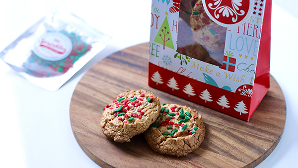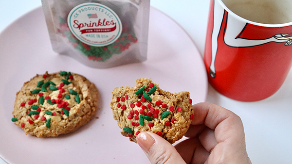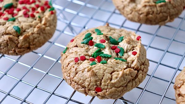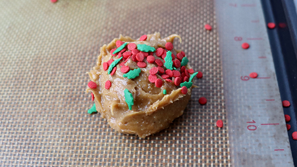 クリスマスリーフのスプリンクルで、ピーナッツバタークッキーを...