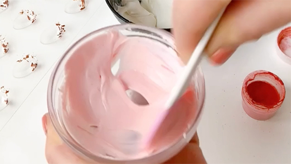 スーパーホワイトのキャンディコートにチョコレート用の着色料を少量加えるとパステルカラーが作れますので試してみてください。