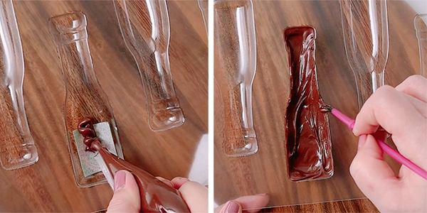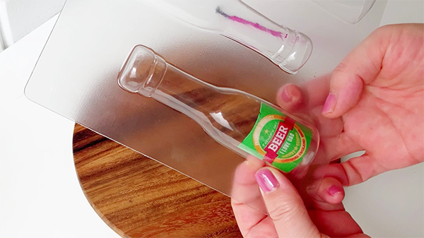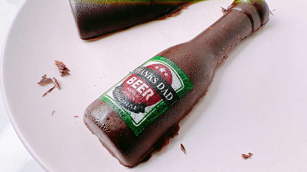 で。実はこのビールボトルのデザイン、ボトルのチョコレート型(90-12231)に使うこともできちゃうんですよ!