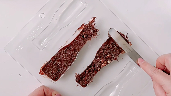 凹みにチョコが入ったら、パレットナイフで表面を整えたら...
