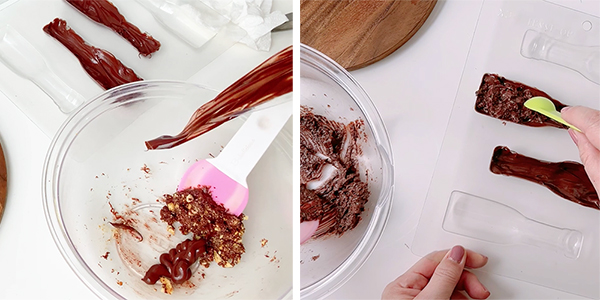 キャンディコートに具材を混ぜたら、チョコの内側へ。