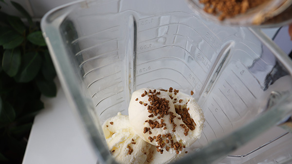 いつも通り、ブレンダーミキサーにアイスクリームを入れてから...