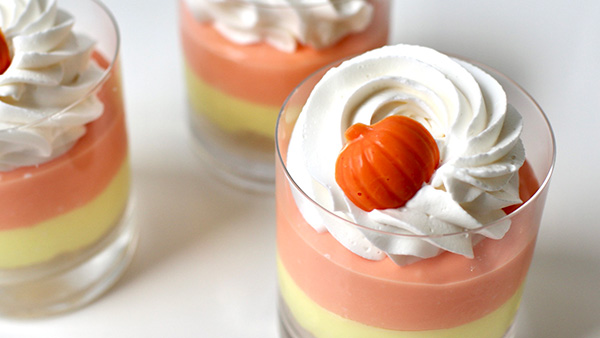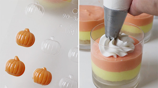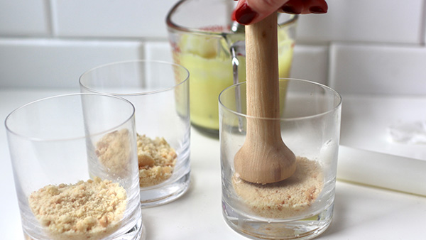 味にこだわるなら砕いたクラッカーやクッキーを器の底へ。ハロウィンなら黒いオレオでもいいかもね!