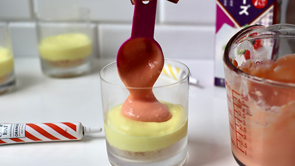 レイヤーはゼリーを層にするみたいに、1層づつ冷やし固めるほうがいいかしら?