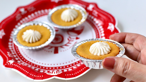さて、このパンプキンチーズケーキ。少し生地が残ったので、愛用の小さな使い捨てパイ皿で生地だけ焼いてみましたが、こんな使い方もありでした!