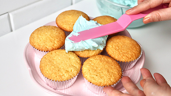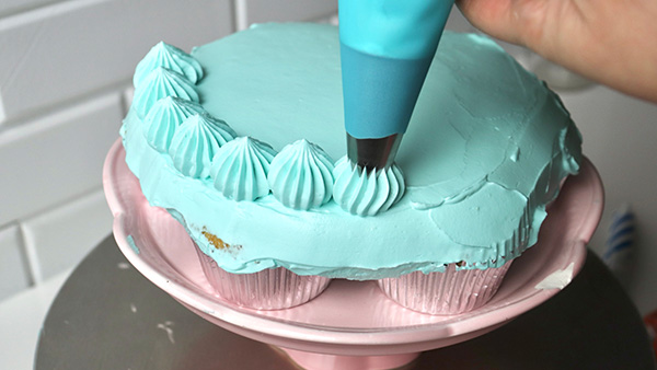 レギュラーサイズのカップケーキを焼き、円状に並べたら大胆にクリームをON...