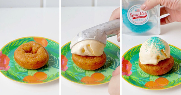 暑くて毎日がアイスクリーム、今日は冷凍ドーナツにのせたオヤツ