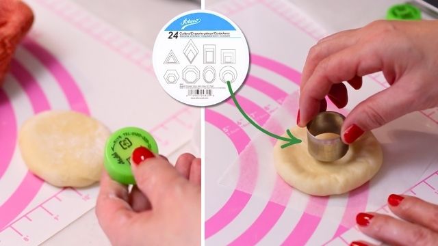 そう。ドーナツの穴は、ペットボトルの蓋を使う
