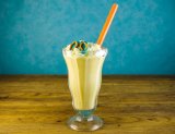 ビーチサンダルチョコをのせた、マンゴーラッシーを作ってみた