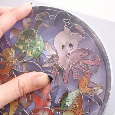 顔がちゃんとついてるタコとヒトデ、ウミガメ、海老、ニモのような手(←?)がついてる魚のクッキー型がセットになってます。