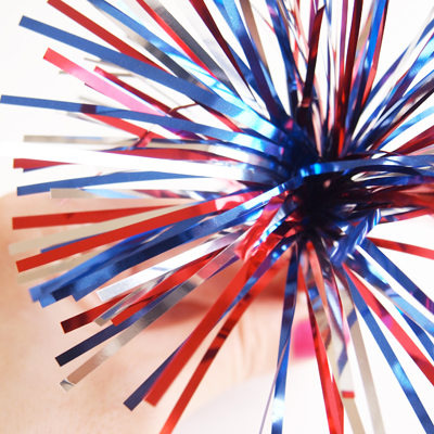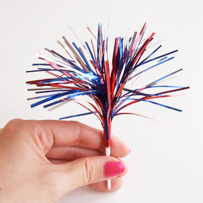 レッドとブルー、シルバーの3カラーのティンセルがミックスされています。アメリカンカラーです♪