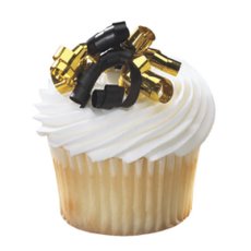 〒 ケーキピック/カールリボン・ゴールド&ブラック(3本入) [DCP12308]