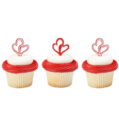 〒 ケーキピック/レッド・ダブルハート(6本入) [DCP38533]